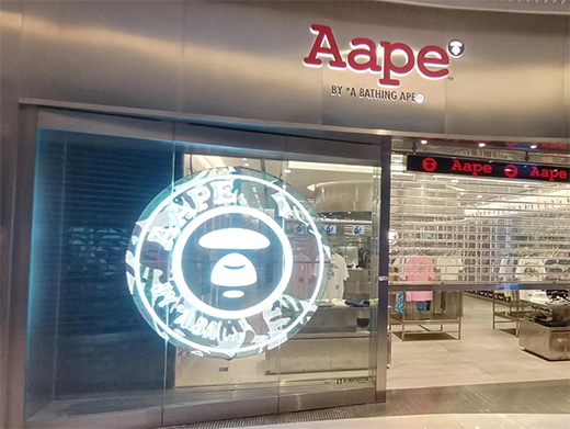 Aape是香港I.T集團(tuán)的知名日系街頭潮牌,智彩科技為廣州天環(huán)廣場Aape門店量身定制透明led顯示屏。